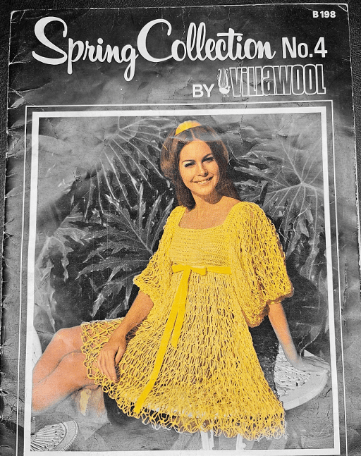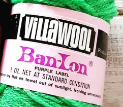 Villawool was an Australian yarn company that put out a yarn called Ban-Lon in the 1970s. Ban-Long was a 100% nylon yarn in 1 ounce balls in DK weight (8 ply). This booklet notes you want the “purple label” Ban-Lon, and my best guess about why the purple label was important is that it may have signified which Villawool yarns were nylon. Nylon yarns were a pretty new thing at the time, so I can see a company wanting to make them stand out.
