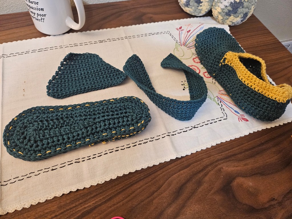 (Note: The trim on the finished slipper is not in the pattern; I just did that for a better fit.)